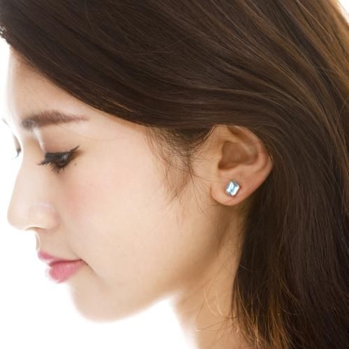 スクエアカットのスワロフスキーが一粒。シンプルで飽きのこない直結タイプのマグネットイヤリングです。ストーンにエポキシ樹脂を乗せて色合いをつけています。オススメは爽やかなブルー。