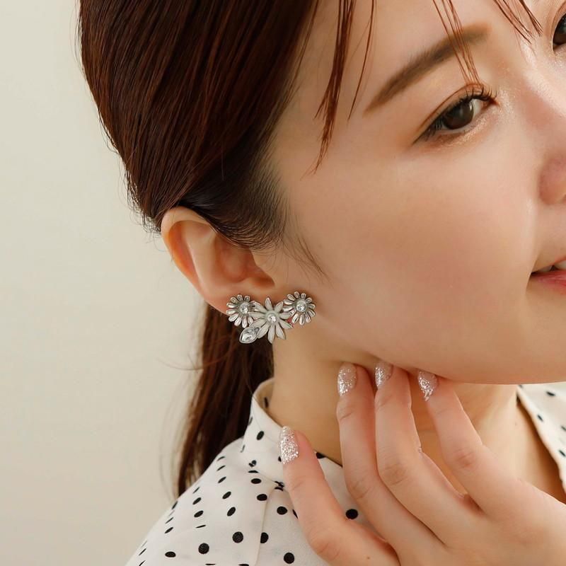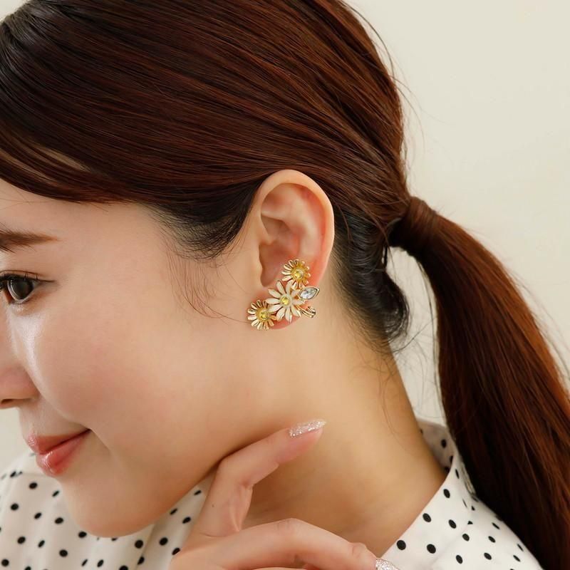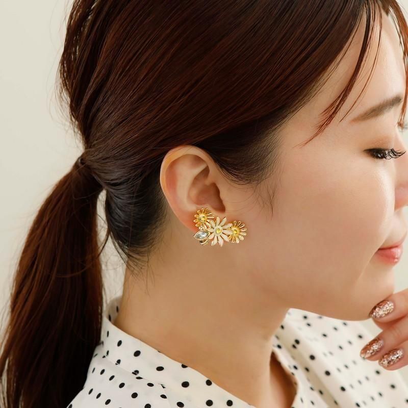 [Margaret]マーガレットのお花をイメージしたパーツを女の子らしいデザインに仕上げました。イヤカフの様なイヤリングは片耳使いでもgood。
