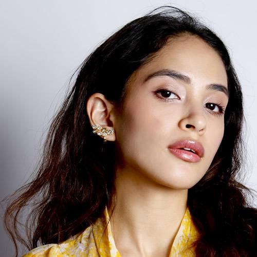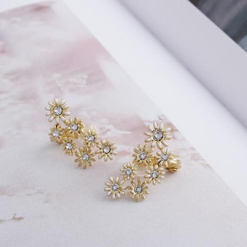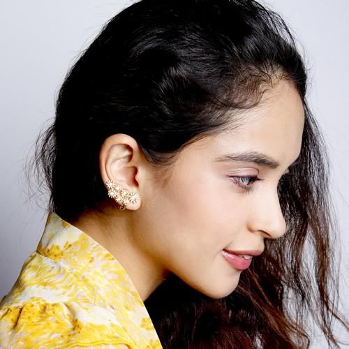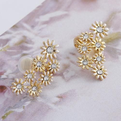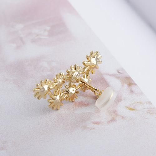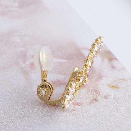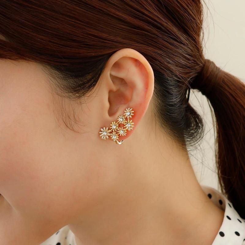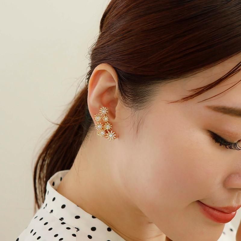 カモミールのような小さな小花を集めたイメージで。耳に添うようにフィットして、イヤカフみたいに耳たぶの上部に着けても可愛いアレンジ多彩なエアフィットイヤリングです。花の中央にはガラスストーンをセットして、大人っぽく甘すぎないイメージで仕上げました。