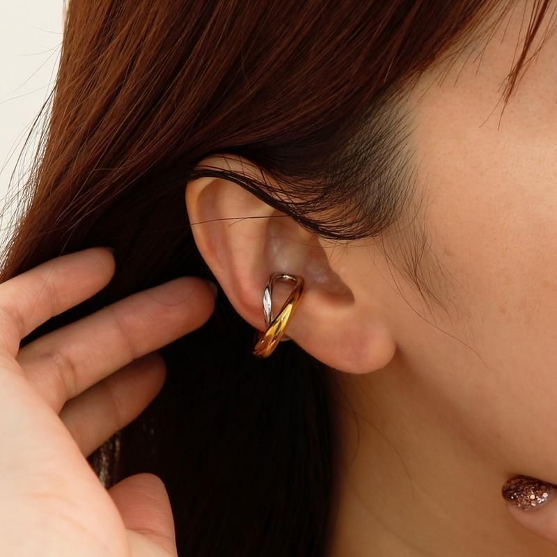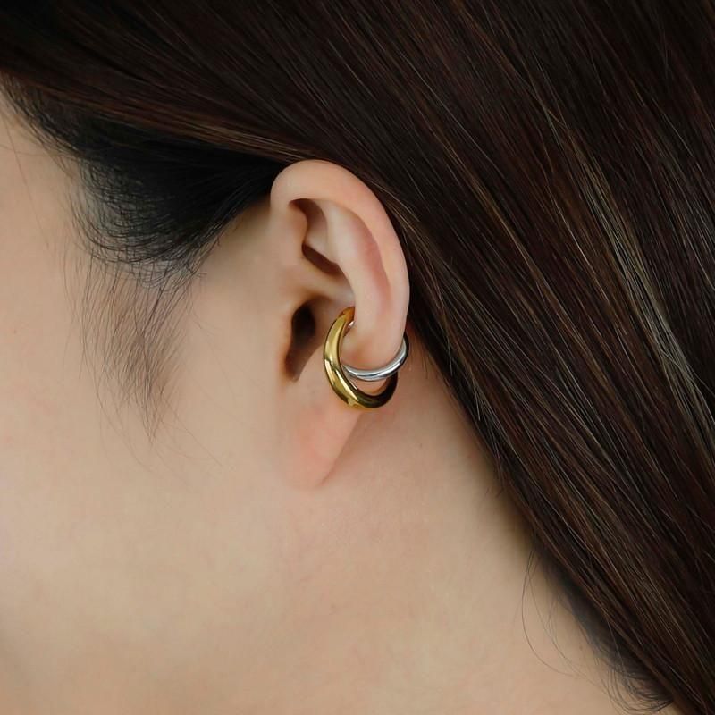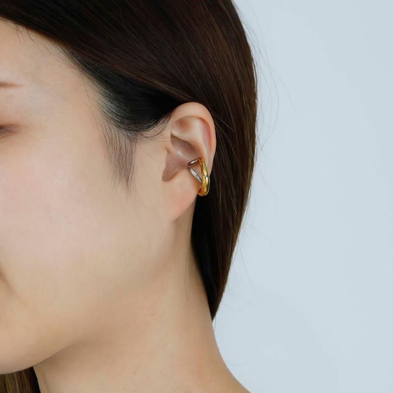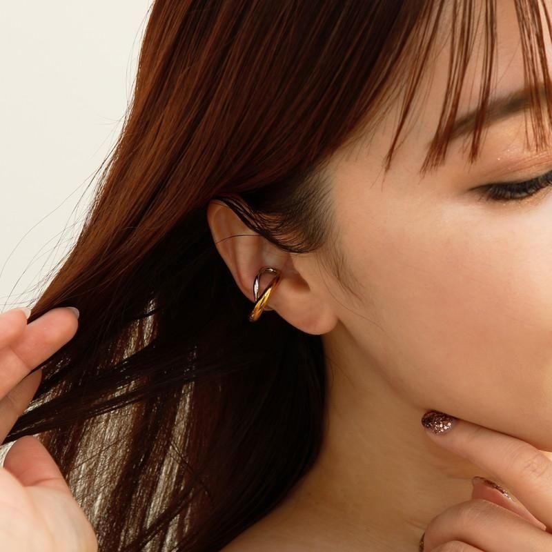 ゴールドからシルバーへと移り変わるグラデーションメッキが印象的なイヤーカフ。