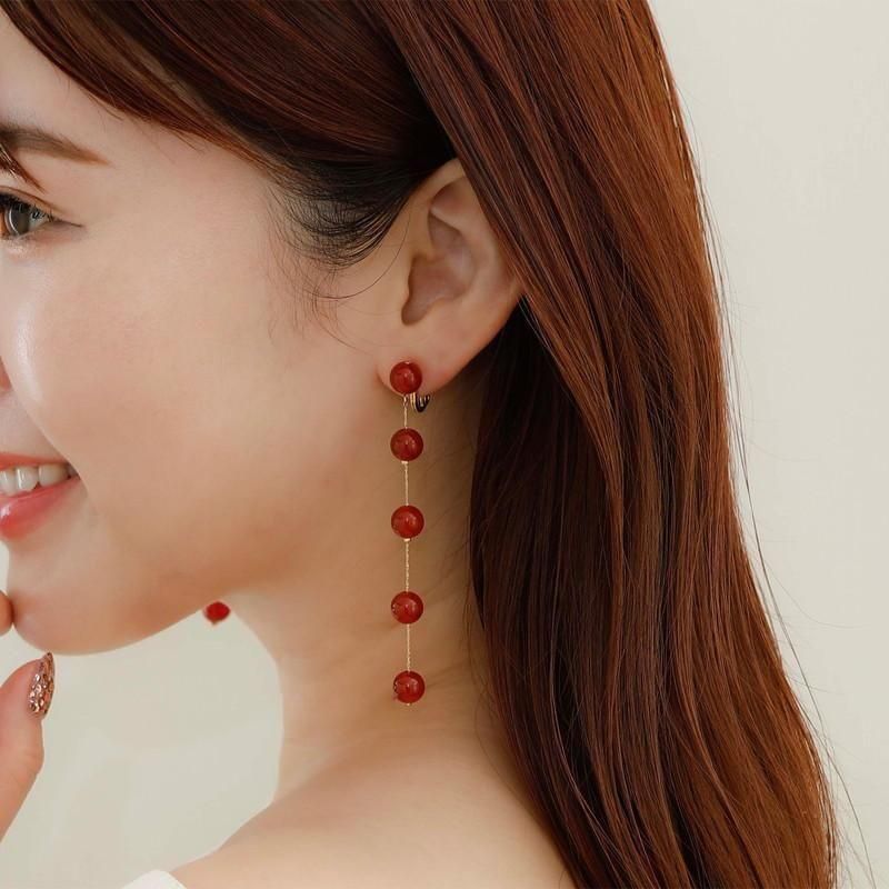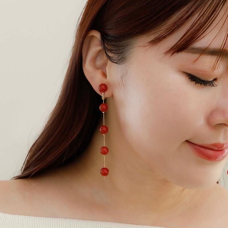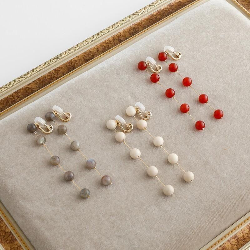 天然石のイヤリングは、自然の色味や質感がそのまま魅力になっています。