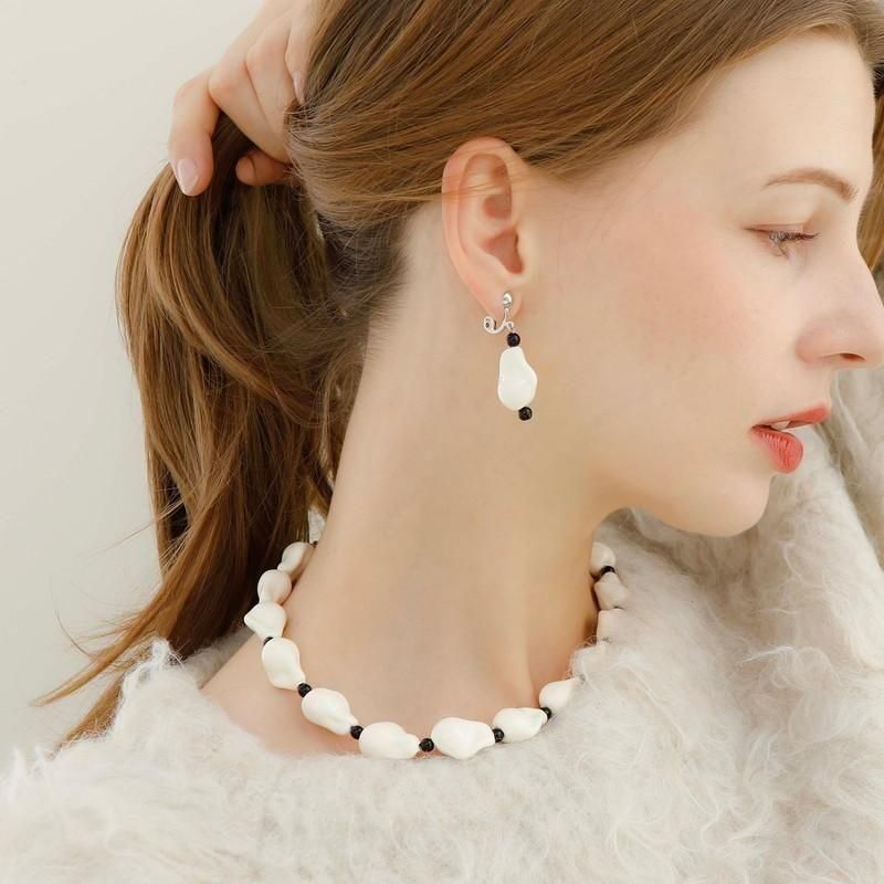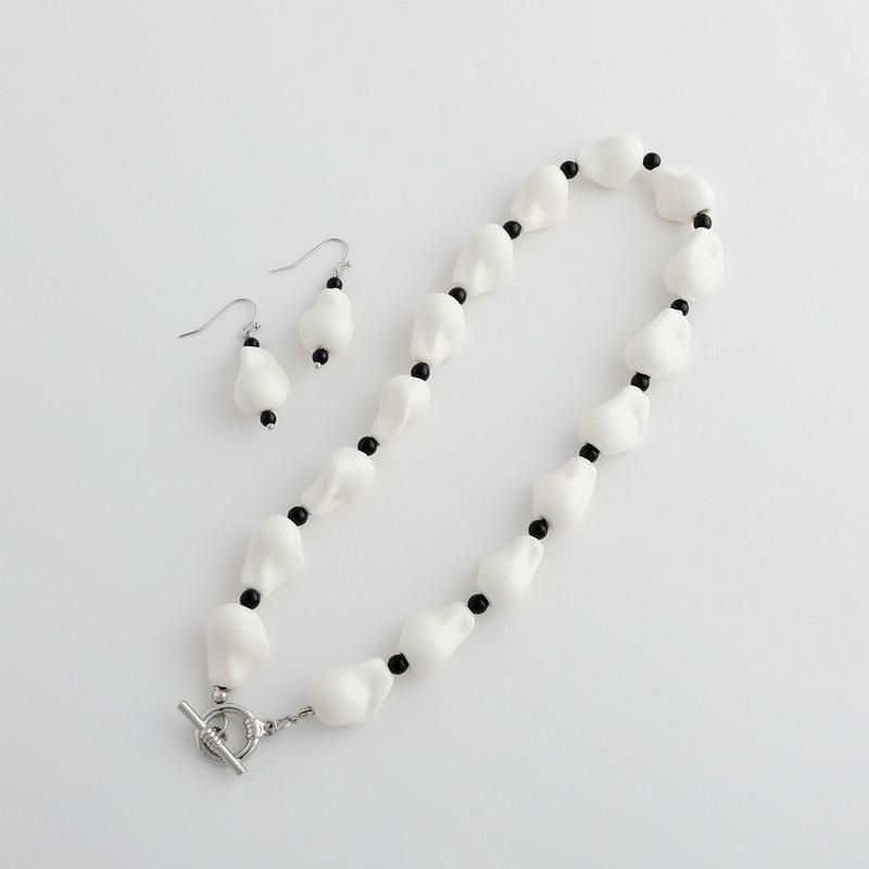 ひとつひとつ形の異なる大粒ビーズが連なるデザインは、存在感がありながらもスタイルに馴染む、アートピースのようなアクセサリーです。