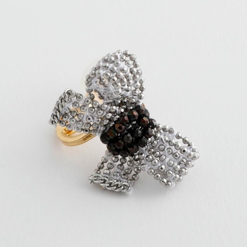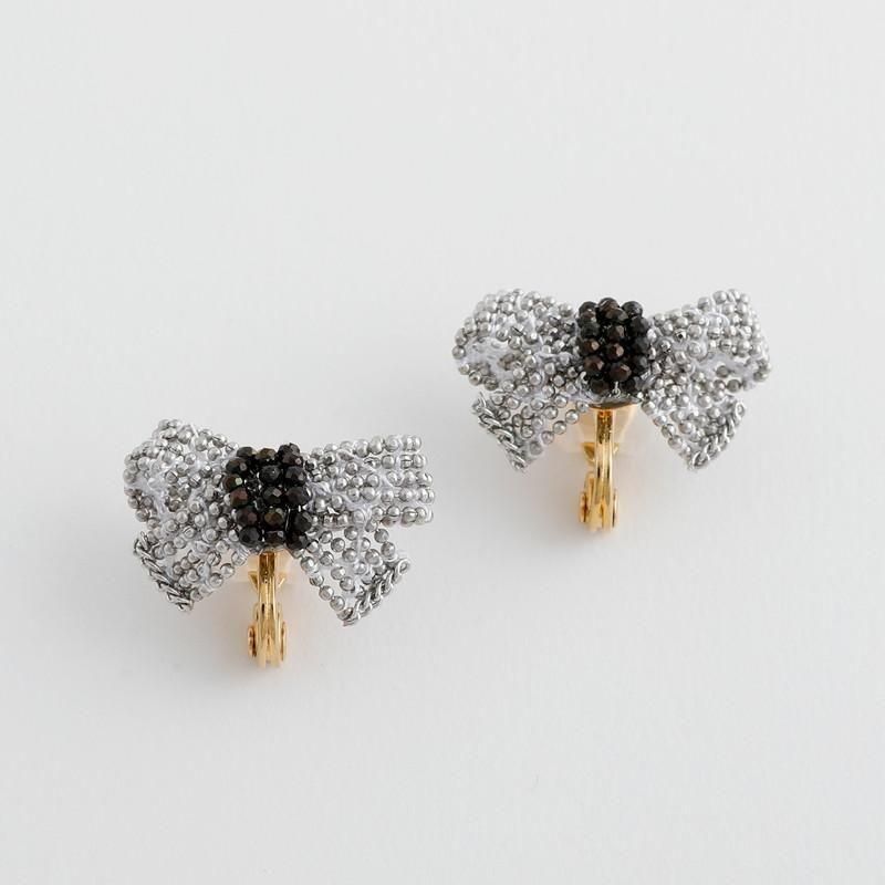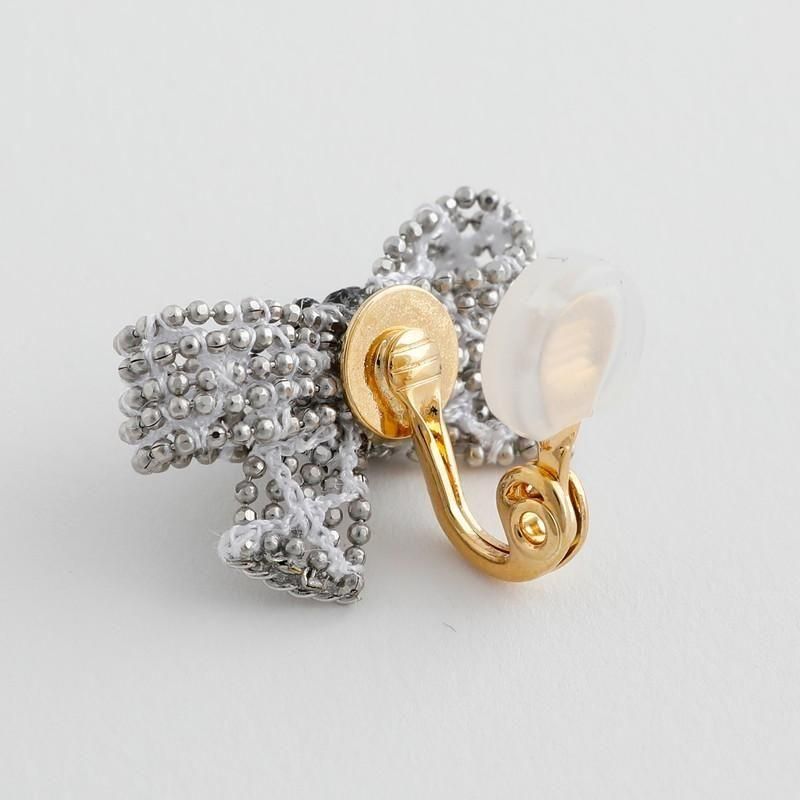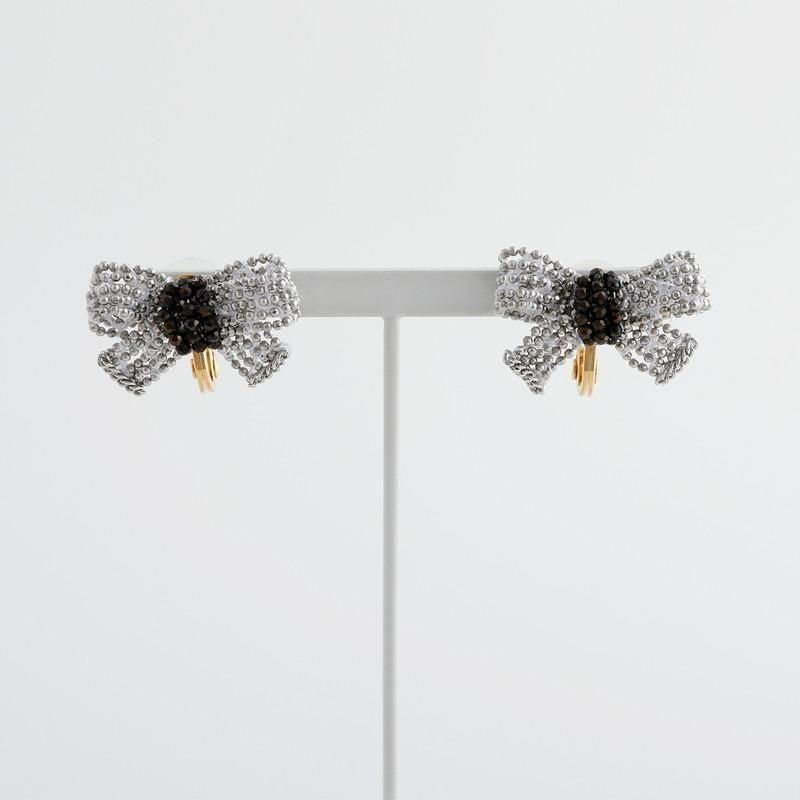 繊細なシルバービーズが光をまとい、立体的に形づくられたリボンモチーフ。