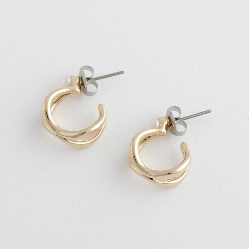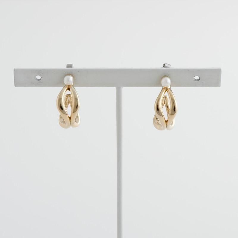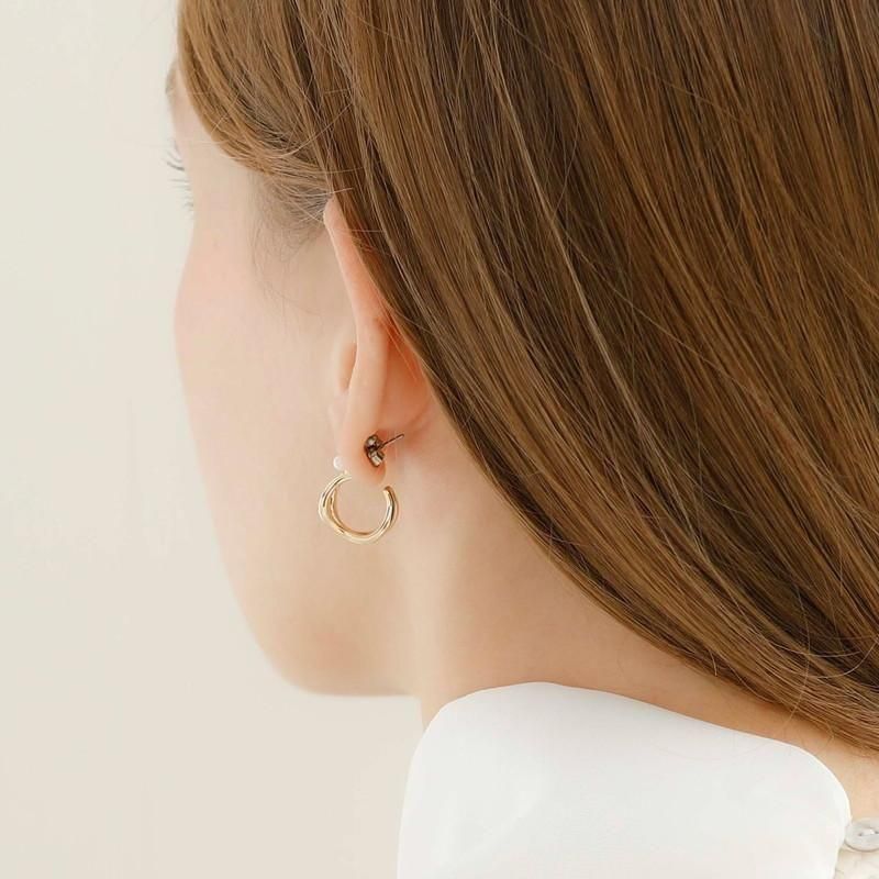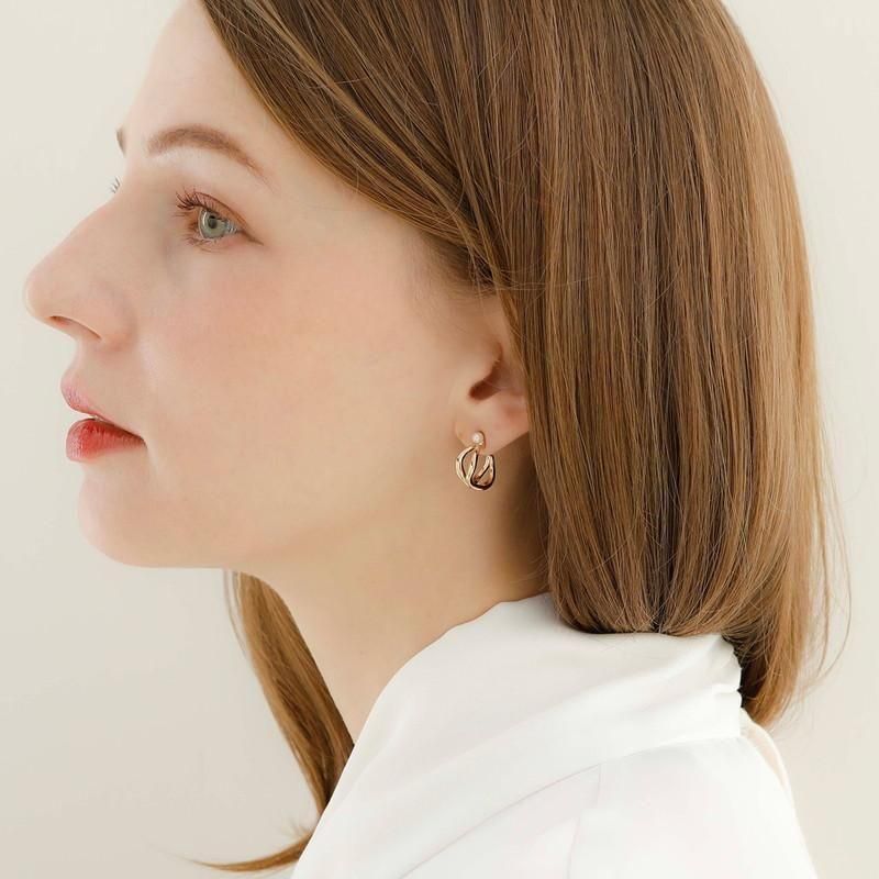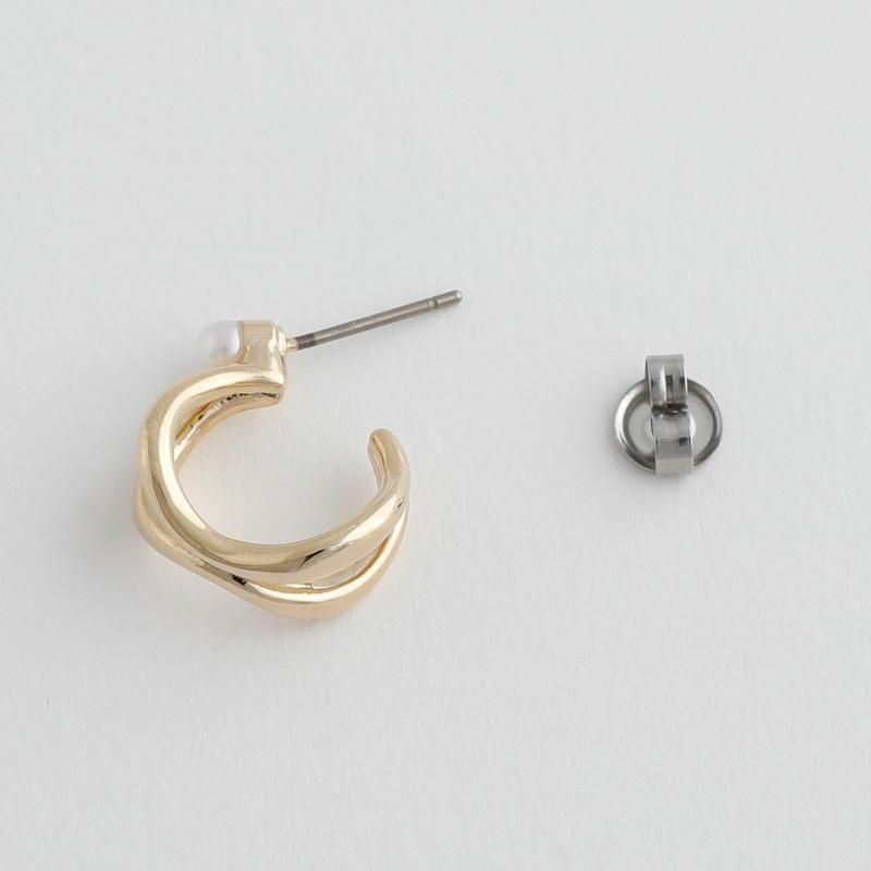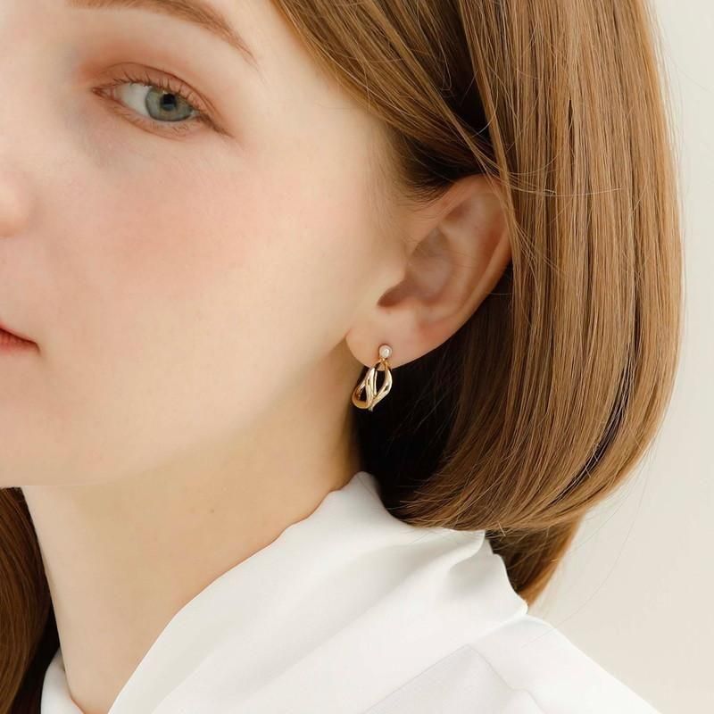 絶妙なウェーブのかかった変形フープと、可憐なパールのコンビネーション。