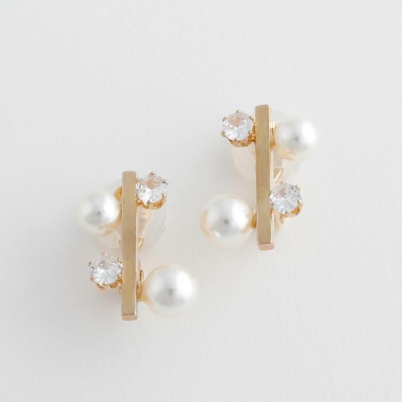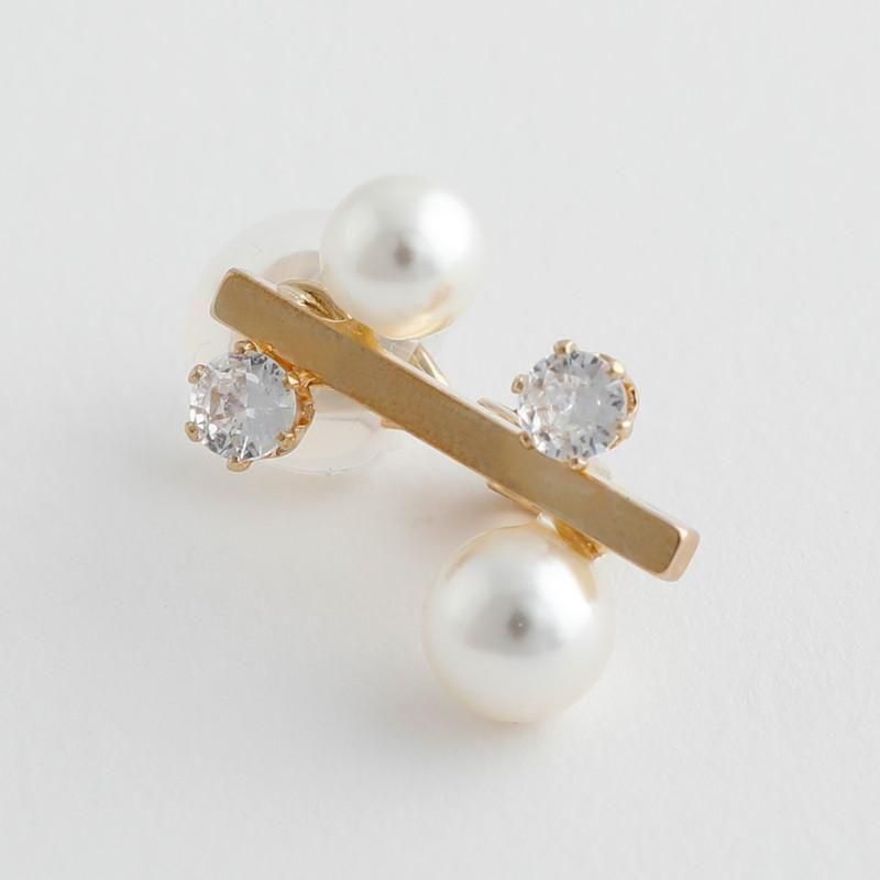 パールとガラスストーンが真ん中のバーから顔を出したようなかわいいデザイン